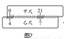 ,如图1所示,若今将甲尺向右平移且平移过程中两把直尺维持紧贴,使得甲尺的刻度![]()