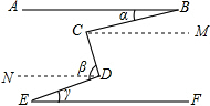 分析 首先过点C作CM∥AB,过点D作DN∥AB,由AB∥EF,即可得AB∥CM∥DN∥EF,然后由两直线平行,内错角相等,即可求得答案.