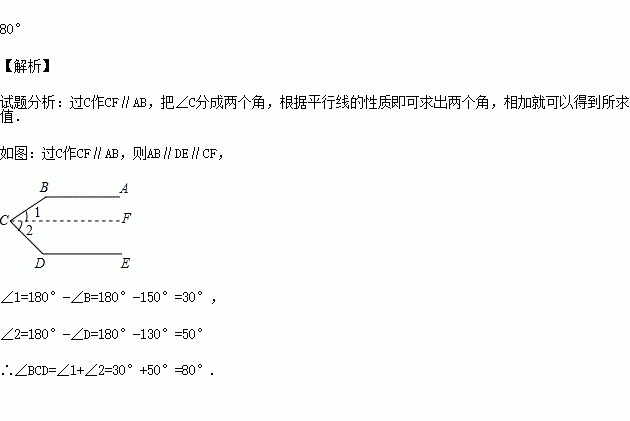 如图,AB∥CD∥EF,若∠ABC=50°,∠CEF=150°,则∠BCE=( )