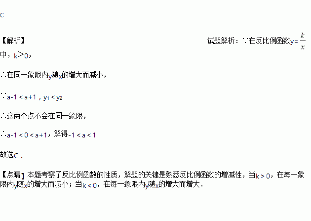 已知点(a-1,y1)、(a+1,y2)在反比例函数y=