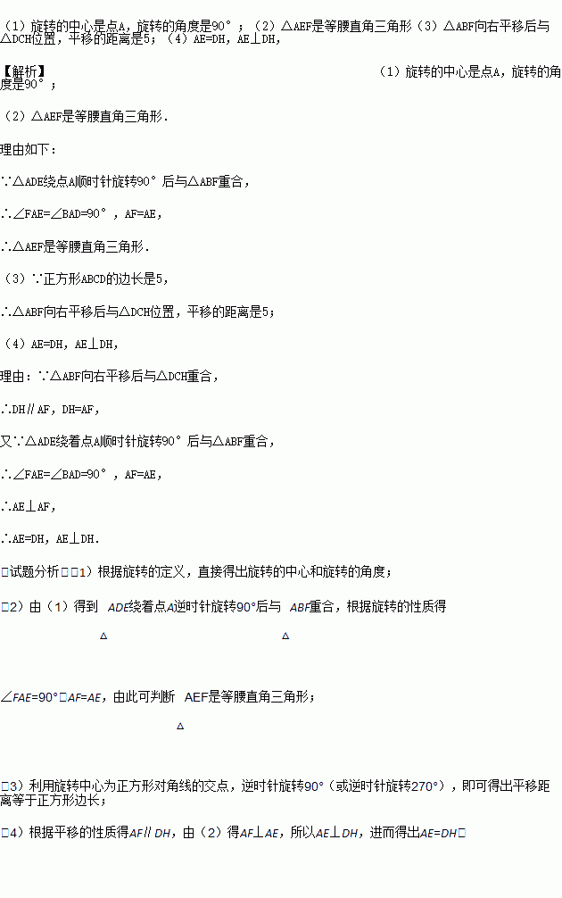 如图,已知正方形ABCD的边长是5,点E在DC上,将△ADE经顺时针旋转后与△ABF重合.