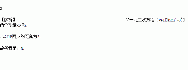 已知数轴上A、B两点对应的数分别是一元二次方程(x+1)(x﹣2)=0的两个根,则A、B两点间的距离是__________________.