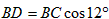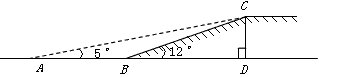 如图,有一段斜坡BC长为10米,坡角∠CBD=12°,为方便残疾人的轮椅车通行,现准备把坡角降为5°.