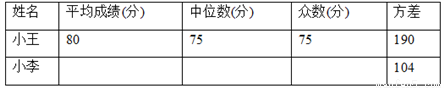 某校要从小王和小李两名同学中挑选一人参加全市知识竞赛,在最近的五次选拔测试中,他俩的成绩分别如下表: