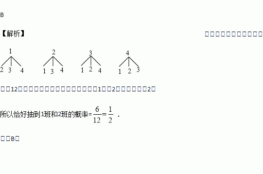 某校九年级一共有1,2,3,4四个班,现从这四个班中随机抽取两个班进行一场篮球比赛,则恰好抽到1班和2班的概率是( )