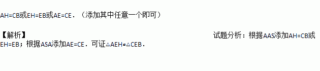 如图,△ABC中,AD⊥BC,CE⊥AB,垂足分别为D、E,AD、CE交于点H,请你添加一个适当的条件:_____________,使△AEH≌△CEB.