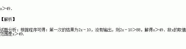对一个实数x按如图所示的程序进行操作,规定:程序运行从“输入一个实数x”到“结果是否大于88?”为一次操作.如果操作只进行一次就停止,则x的取值范围是 .