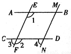 如图,已知AB∥CD,EF∥MN,∠1=115°,