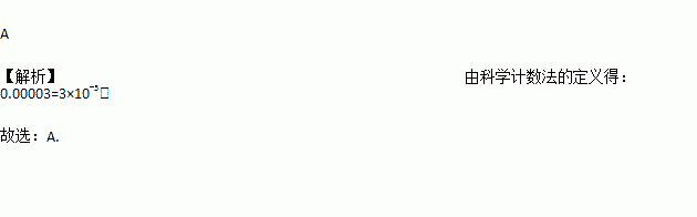 全球可被人类利用的淡水总量约占地球上总水量的0.00003,因此珍惜水,保护水是每个公民的责任。其中数字0.00003用科学计数法表示为( )