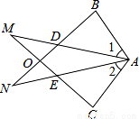 已知△ABN和△ACM位置如图所示,AB=AC,AD=AE,∠1=∠2.