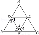 上的交点分别为:A,B,C,D,E,F.已知AB=6,BC=4,DF=9,则DE=( )