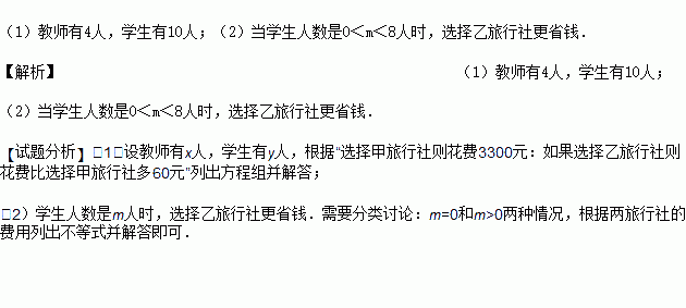 (1)已知,如果这个旅行团选择甲旅行社则花费3300元:如果选择乙旅行社则花费比选择甲旅行社多60元,请问这个旅行团教师有多少人?学生有多少人?