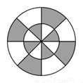 如图,在两个同心圆中,四条直径把大圆分成八等份,若往圆面投掷飞镖,则飞镖落在黑色区域的概率是( ).