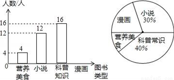 (3)在扇形统计图中,表示“漫画”类所对圆心角是 度,喜欢阅读“营养美食”类图书的人数占全班人数的百分比为 .
