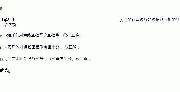 A. 平行四边形的对角线互相平分 B. 矩形的对角线互相垂直且平分