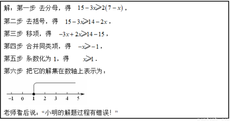 问:请指出小明从第几步开始出现了错误,并说明判断依据.