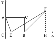 | (2)假设存在点E,使EF=AE,设E(a,0), 作FH⊥x轴于H, 如图,由(1)知∠EAO=∠FEH, 于是Rt△AOE≌Rt△EHF, ∴ FH=OE,EH=OA, ∴ 点F的纵坐标为a,即FH=a, 由BF是外角平分线,知∠FBH = 45°, ∴BH=FH=a, 又由C(m,n)有OB=m, ∴BE=OB-OE=m-a, ∴EH=m-a+a=m, 又EH=OA=n, ∴m=n,这与已知m≠n相矛盾, 因此在边OB上不存在点E,使EF=AE成立。 |