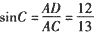 (2)解:在Rt△ADC中,,故设AD=2k,AC=13k(k>0),