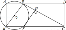如图,在矩形ABCD中,AB=2,AD=5,过点A、B作⊙O,交AD、BC于点E、F,连接BE、CE,过点F作FG⊥CE,垂足为G.