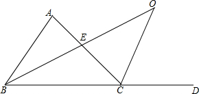 (2)由题中角平分线可得∠O=∠OCD-∠OBC=$\frac{1}{2}$∠ACD-$\frac{1}{2}$∠ABC,进而得出∠A=180°-∠ABC-180°+∠ACD=∠ACD-∠ABC,即可得出结论;