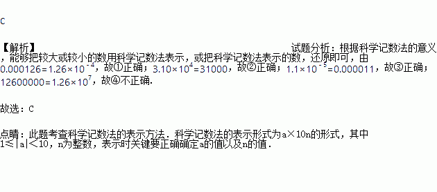 ③1.1×10-5=0.000011 ④12600000=1.26×106