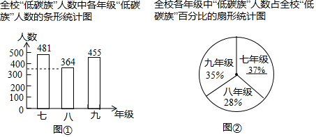 七年级“低碳族”人数占总人数的百分比为1-(35%+28%)=37%,