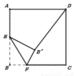 如图,正方形ABCD边长为2,E为AB边的中点,点F是BC边上一个动点,把△BEF沿EF向形内部折叠,点B的对应点为B’, 当B’D的长最小时,BF长为( )