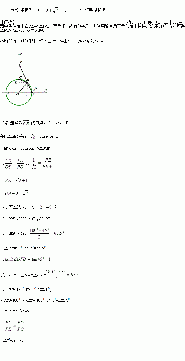 如图,AB是⊙O的直径,点P是y轴正半轴上的一点,⊙O与y轴正半轴交于点C,PB交⊙O于点D,点D是劣弧