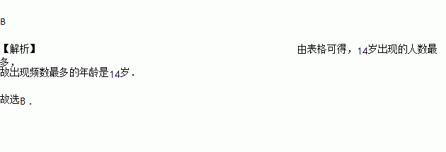 我校学生会成员的年龄如下表:则出现频数最多的年龄是( )