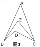 (3)灵活应用:请你直接利用以上结论,解决以下列问题:如图3,BE平分∠ABD,CE平分∠ACD,若∠BAC=40°,∠BDC=120°,求∠BEC的度数。