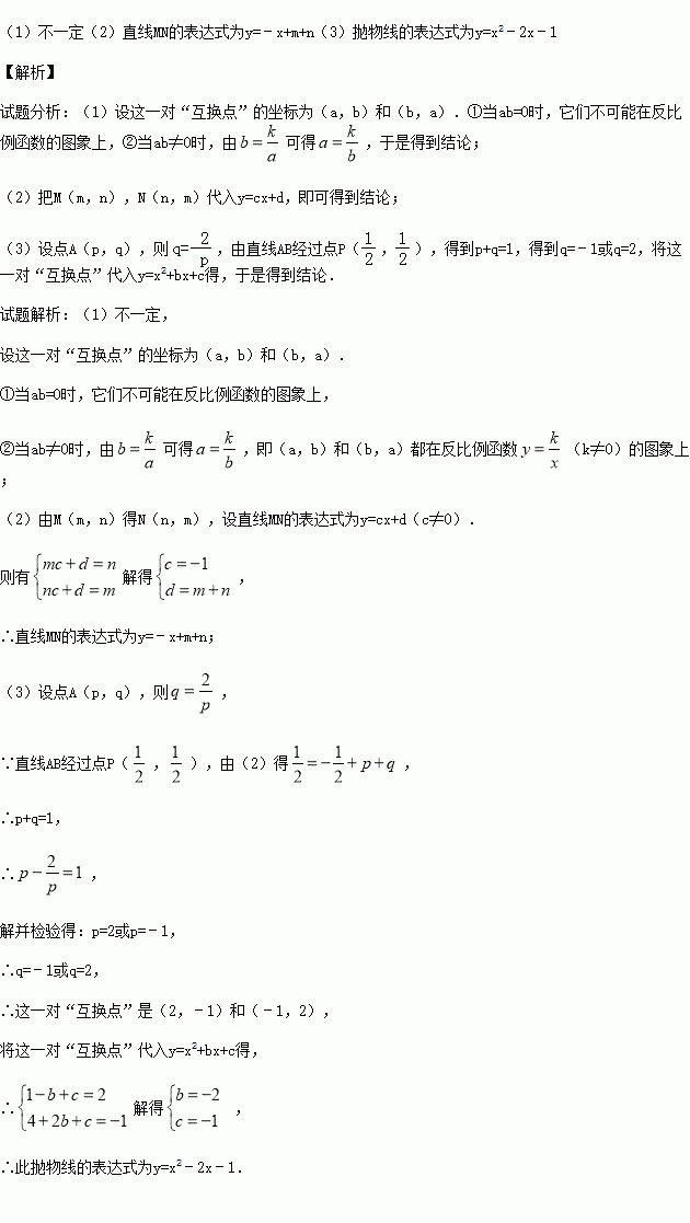 (1)任意一对“互换点”能否都在一个反比例函数的图象上?为什么?