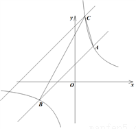 的图像向上平移与反比例函数的图像在第一象限内交于点C,C点的横坐标为1,求△ABC的面积.