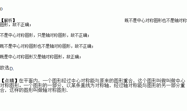 某校计划修建一座既是中心对称图形又是轴对称图形的花坛,从学生中征集到设计方案有等腰三角形、正三角形、平行四边形、菱形等四种图案,你认为符合条件的是( ).