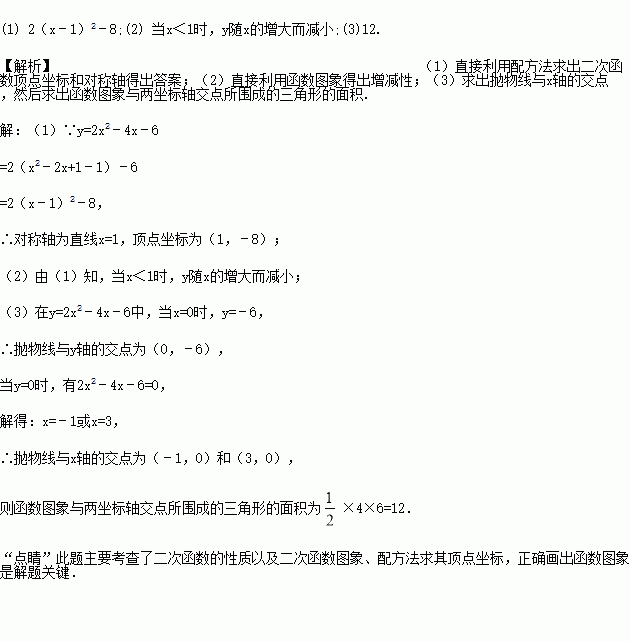 (6分)已知二次函数y=2x2﹣4x﹣6.