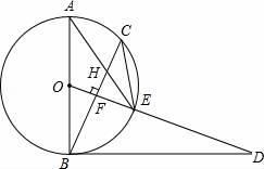 已知,如图,AB是⊙O的直径,点C为⊙O上一点,OF⊥BC于点F,交⊙O于点E,AE与BC交于点H,点D为OE的延长线上一点,且∠ODB=∠AEC.