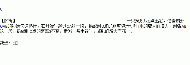 如图,一只蚂蚁从O点出发,沿着扇形OAB的边缘匀速爬行一周,设蚂蚁的运动时间为t,蚂蚁到O点的距离为S,则S关于t的函数图象大致为( )