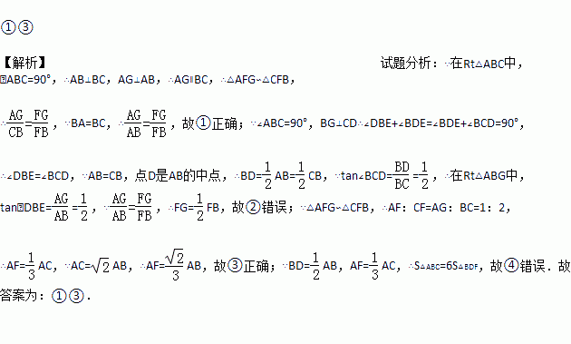 如图,在Rt△ABC中,∠ABC=90°,BA=BC.点D是AB的中点,连接CD,过点B作BG丄CD,分别交CD、CA于点E、F,与过点A且垂直于AB的直线相交于点G,连接DF.给出以下四个结论: