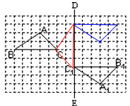 (1)画出将△A1B1C1,沿直线DE方向向上平移5格得到的△A2B2C2
