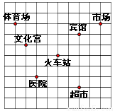 如图,已知火车站的坐标为(2,2),文化宫的坐标为(-1,3).