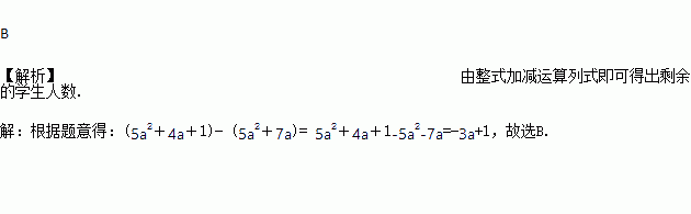 已知某学校有(5a2+4a+1)名学生正在参加植树活动,为了支援兄弟学校,决定从该校抽调(5a2+7a)名学生去支援兄弟学校,则剩余的学生人数是( )