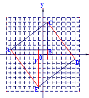 在平面直角坐标系中,△ABC的顶点坐标是A(-7,1),B(1,1),C(1,7),线段DE的端点坐标是D(7,-1),E(-1,-7)。