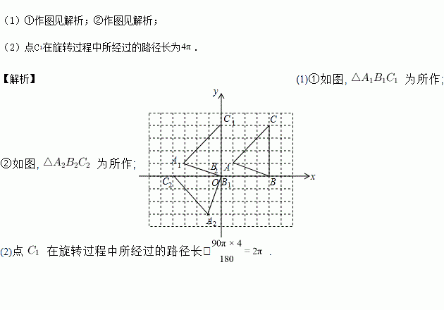 ②将△A1B1C1绕点B1逆时针旋转90°,得到△A2B2C2.