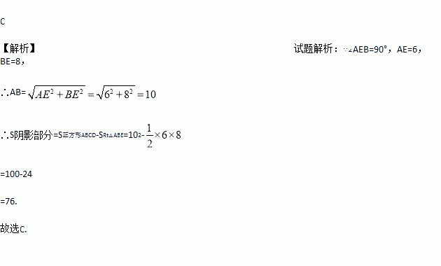 如图,点E在正方形ABCD内,满足∠AEB=90°,AE=6,BE=8,则阴影部分的面积是( )