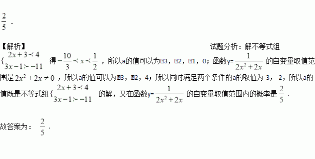 从﹣3,﹣2,﹣1,0,1,3,4这七个数中随机抽取一个数记为a,a的值既是不等式组