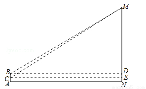 某市一湖的湖心岛有一颗百年古树,当地人称它为“乡思柳”,不乘船不易到达,每年初春时节,人们喜欢在“聚贤亭”观湖赏柳.小红和小军很想知道“聚贤亭”与“乡思柳”之间的大致距离,于是,有一天,他们俩带着侧倾器和皮尺来测量这个距离.测量方法如下:如图,首先,小军站在“聚贤亭”的A处,用侧倾器测得“乡思柳”顶端M点的仰角为23°,此时测得小军的眼睛距地面的高度AB为1.7米,然后,小军在A处蹲下,用侧倾器测得“乡思柳”顶端M点的仰角为24°,这时测得小军的眼睛距地面的高度AC为1米.请你利用以上测得的数据,计算“聚贤亭”与“乡思柳”之间的距离AN的长(结果精确到1米).(参考数据:sin23°≈0.3907,cos23°≈0.9205,tan23°≈0.4245,sin24°≈0.4067,cos24°≈0.9135,tan24°≈0.4452.)