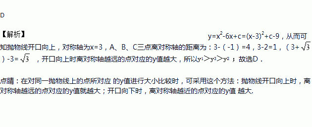 若二次函数y=x2-6x+c的图象过A(-1,y1),B(2,y2),C(3+