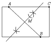 为进一步打造“宜居重庆”,某区拟在新竣工的矩形广场的内部修建一个音乐喷泉,要求音乐喷泉M到广场的两个入口A、B的距离相等,且到广场管理处C的距离等于A和B之间距离的一半,A、B、C的位置如图所示.请在答题卷的原图上利用尺规作出音乐喷泉M、位置.(要求:不写已知、求作、作法和结论,保留作图痕迹,必须用铅笔作图)![]()