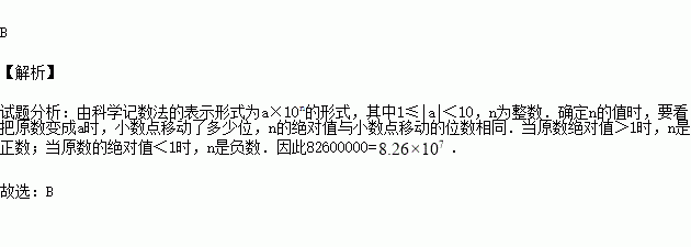 据国家旅游局统计,2017年端午小长假全国各大景点共接待游客约为82600000人次,数据82600000用科学记数法表示为( )