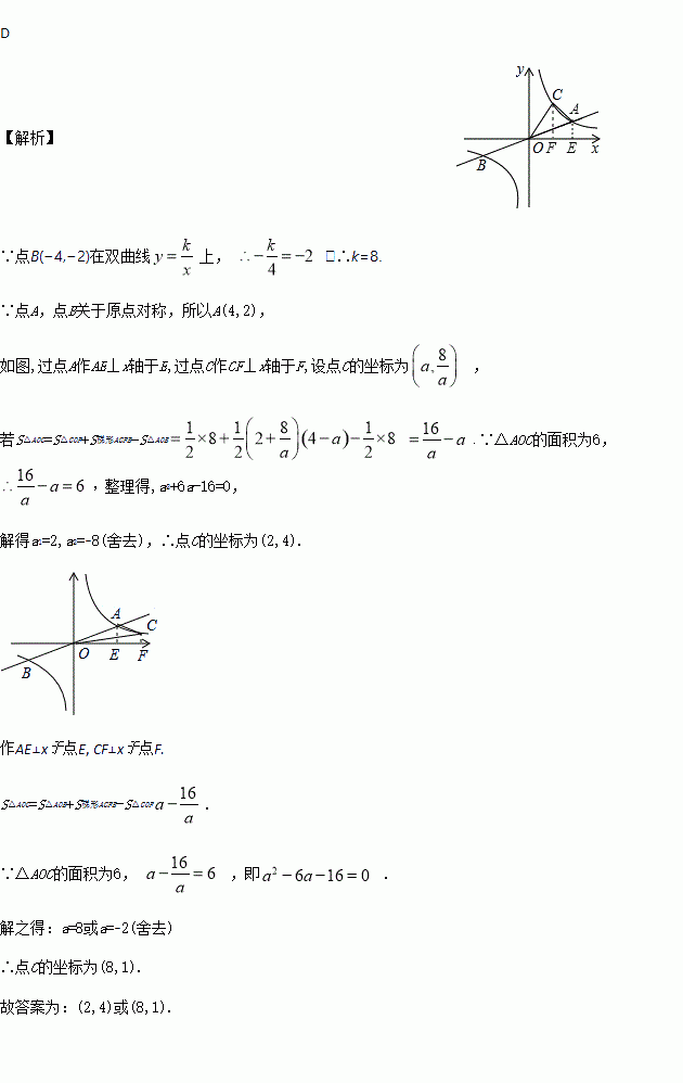 交于A、B两点,点B坐标为(-4,-2),C为双曲线
