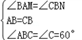 ∴∠BQM=∠BAQ+∠ABQ=∠CBN+∠ABN=∠ABC=60°。